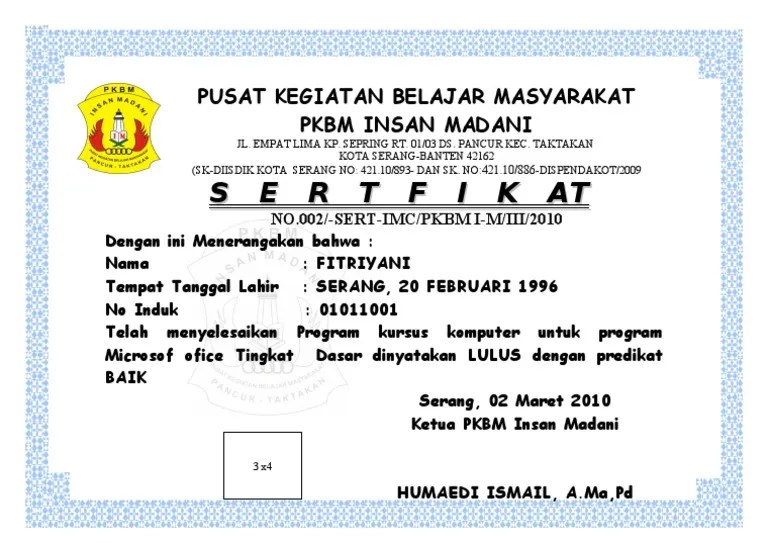 Contoh Sertifikat Pelatihan Microsoft Office / Contoh Sertifikat Kursus Komputer Pdf - Need an alternative to word?